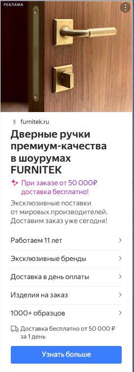 В премиальном сегменте эффективность контекстной рекламы определяется не количеством переходов, а точностью попадания в аудиторию. В проекте FURNITEK ключевым стало выстроить рекламу так, чтобы она сразу “говорила на языке премиум” и приводила тех, кто понимает ценность продукта.